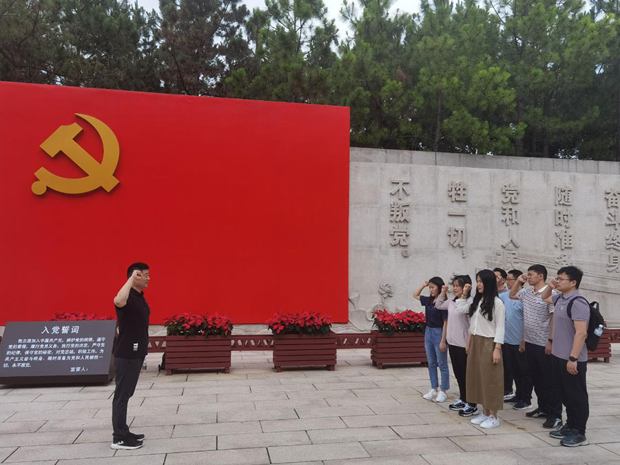 首先,大家來到南湖革命紀(jì)念館前,公司黨支部書記路世強(qiáng)組織全體黨員同志重溫了入黨誓詞。鏗鏘恢宏的誓詞,強(qiáng)烈震撼著在場(chǎng)的每一位黨員,一字一句,神圣而豪邁,錚錚誓言,體現(xiàn)了黨員同志們對(duì)中國(guó)共產(chǎn)黨的無限忠誠(chéng),堅(jiān)定了入黨使命,奮斗初心。