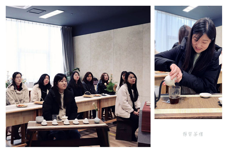 在靜習(xí)茶禮課堂,老師向大家講授了茶的分類知識(shí),普及了茶具、茶禮和選茶、泡茶等傳統(tǒng)文化,并帶領(lǐng)大家體驗(yàn)了一整套茶藝流程。
