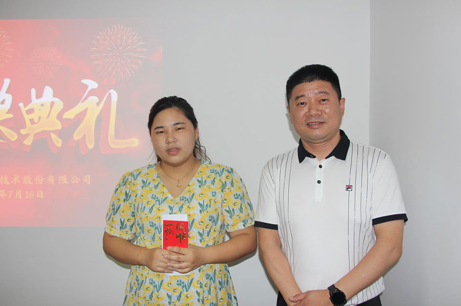 公司黨支部書記路世強為江蘇省委網(wǎng)信辦、江蘇省互聯(lián)網(wǎng)行業(yè)黨委舉辦的黨史知識競賽參賽獲三等獎人員頒發(fā)獎金。