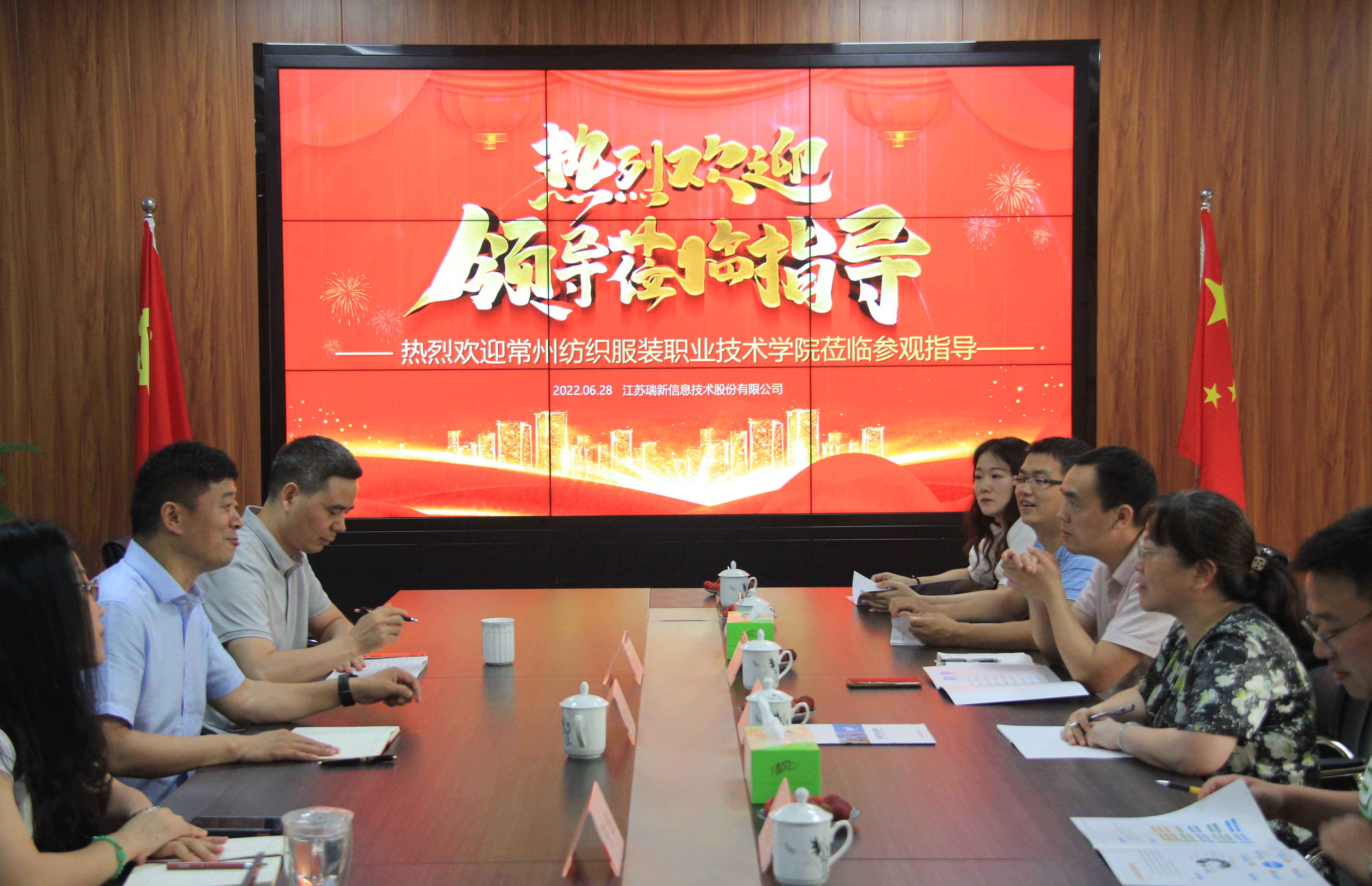 ? 為進(jìn)一步加強(qiáng)校企聯(lián)合,深化人才戰(zhàn)略合作,6月28日下午,常州紡織服裝職業(yè)技術(shù)學(xué)院機(jī)電學(xué)院領(lǐng)導(dǎo)蒞臨江蘇瑞新信息技術(shù)股份有限公司參觀指導(dǎo)。
