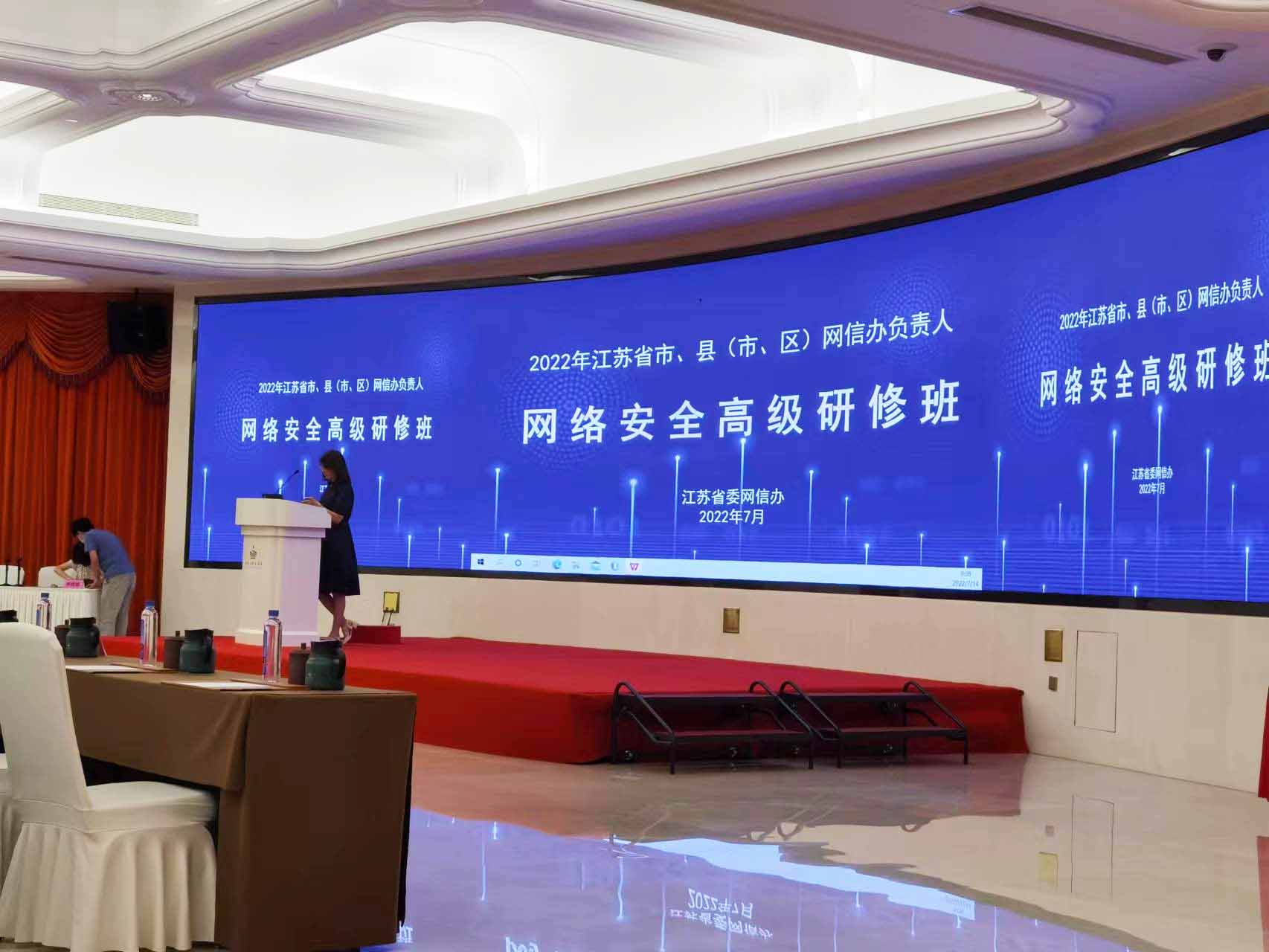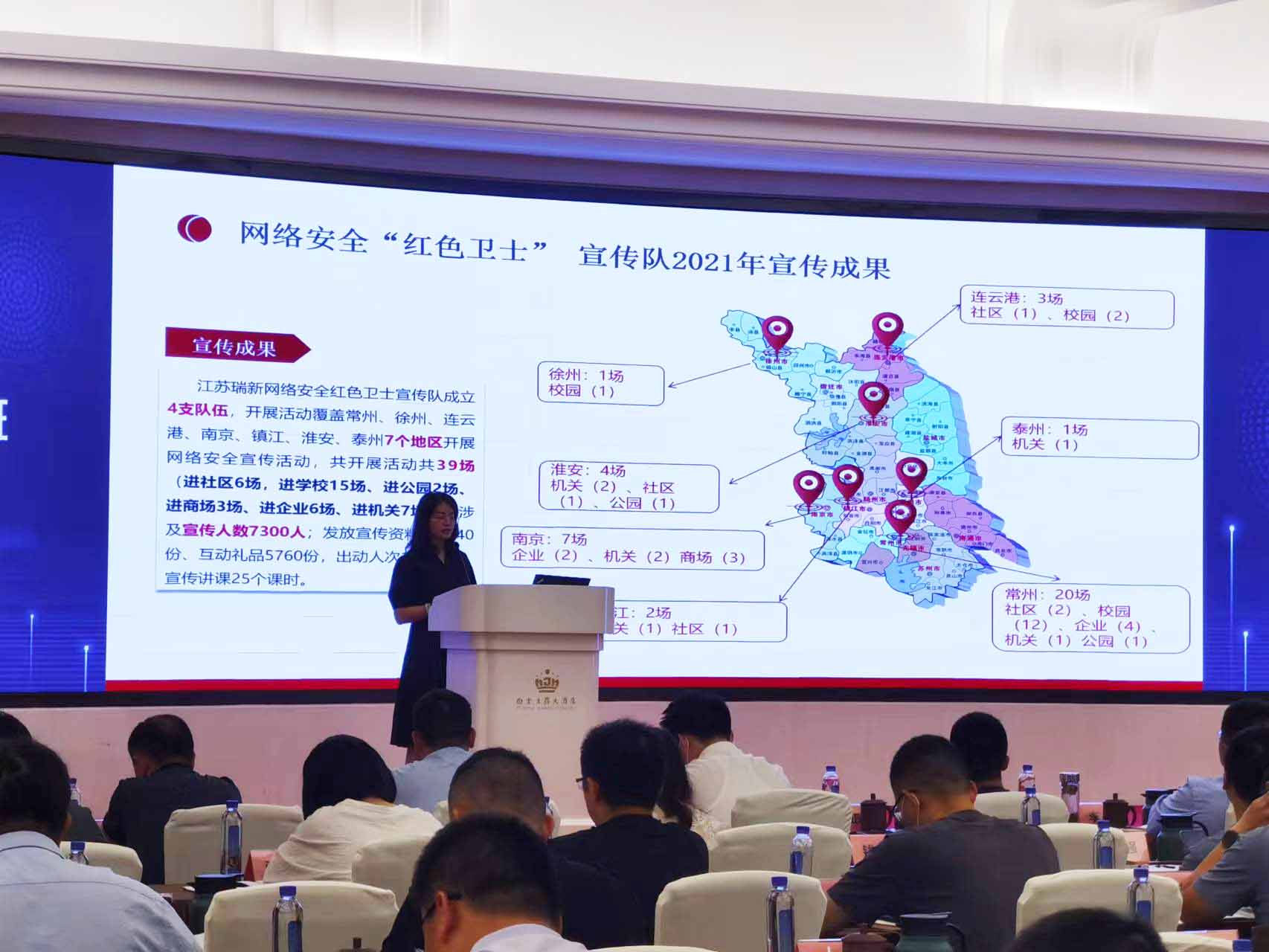 ?2022年7月12日-15日,江蘇省市、縣(市、區(qū))網(wǎng)信辦負(fù)責(zé)人網(wǎng)絡(luò)安全高級研修班”在江蘇南京舉辦。江蘇瑞新信息技術(shù)股份有限公司參加并向江蘇省市、縣(市、區(qū))網(wǎng)信辦負(fù)責(zé)人匯報(bào)公司黨建品牌網(wǎng)絡(luò)安全“紅色衛(wèi)士”主要做法,此次共100余人參加本次高級研修班。