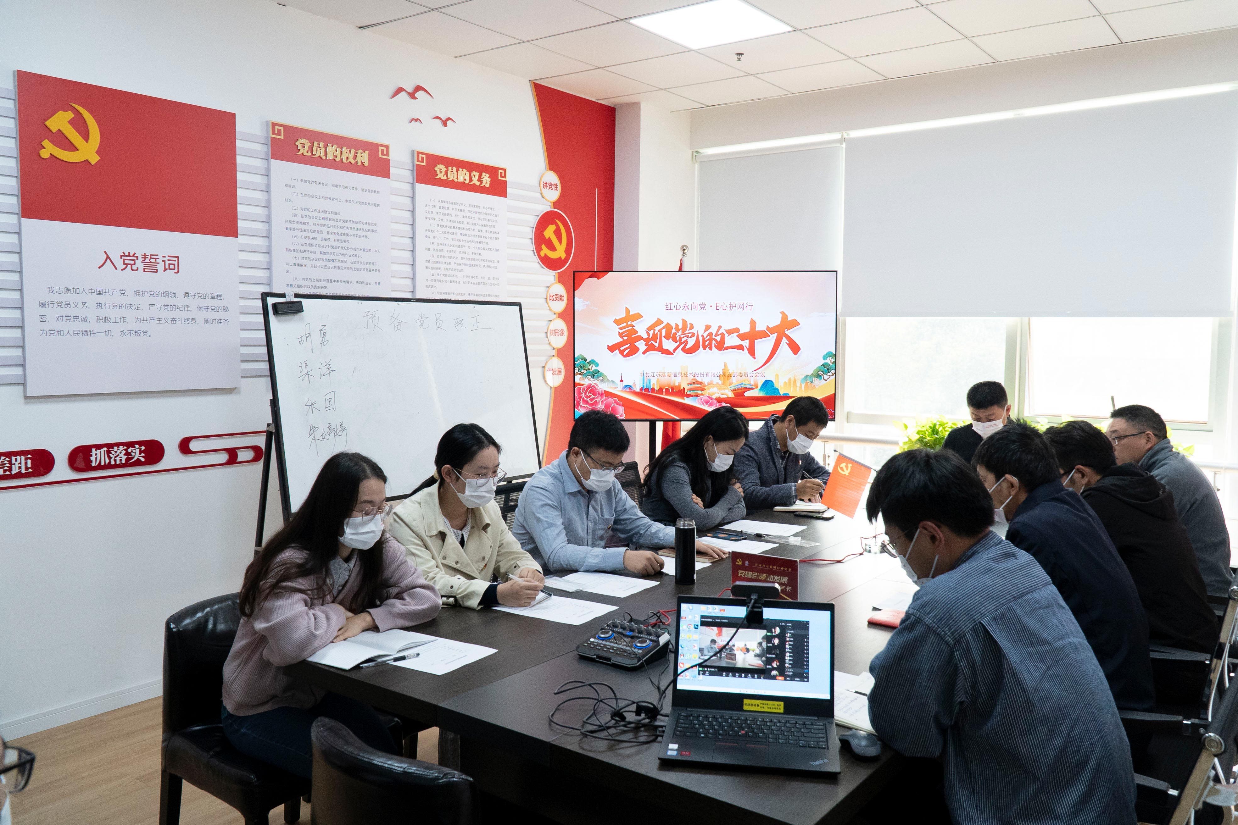 喜迎二十大,永遠(yuǎn)跟黨走! 為充分發(fā)揮黨組織的戰(zhàn)斗堡壘作用和黨員先鋒模范作用,2022年10月16日上午,中共江蘇瑞新信息技術(shù)股份有限公司黨支部召開支部會議。