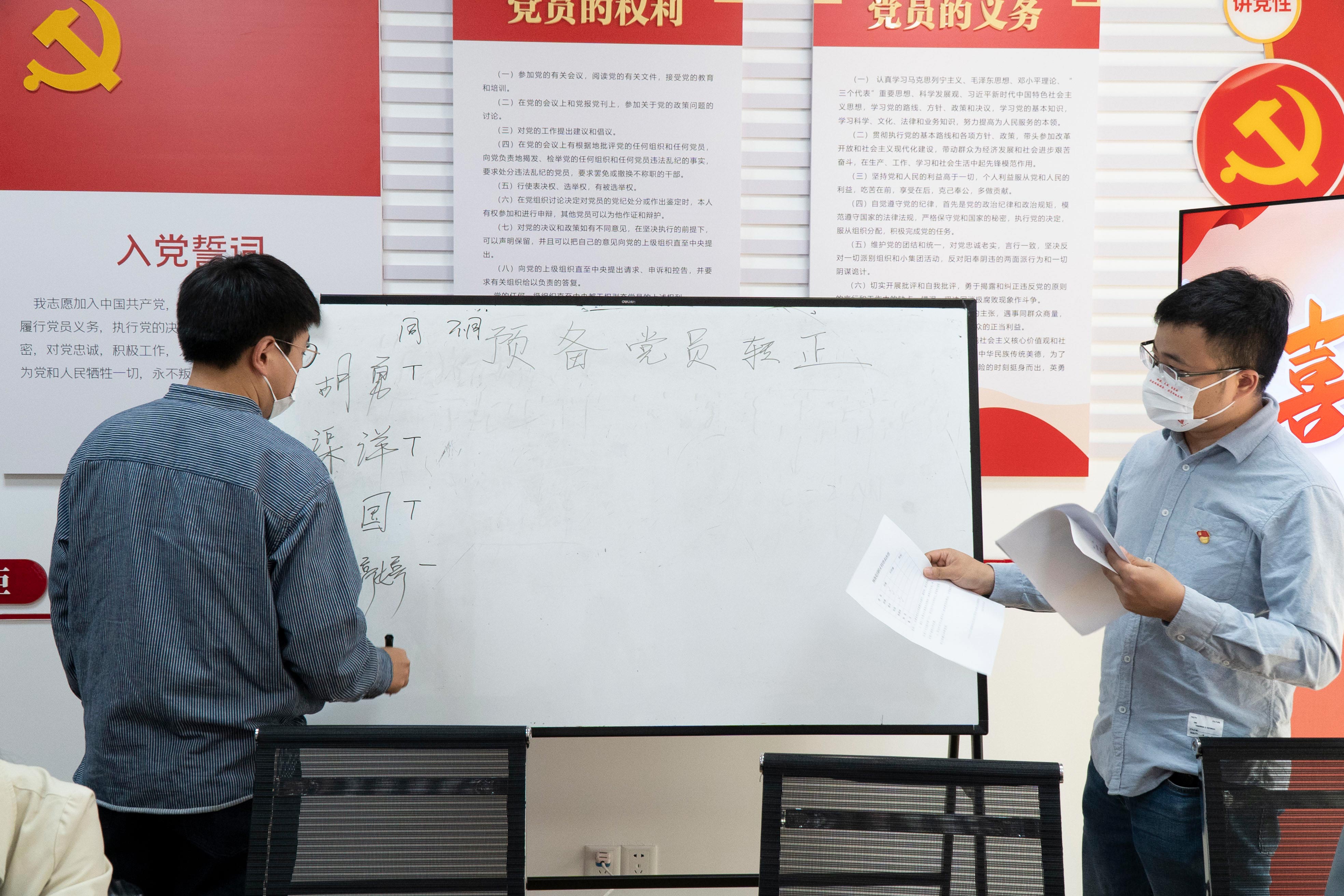會上,支部討論了“胡勇、渠洋、張國、朱婷婷”4名預(yù)備黨員轉(zhuǎn)正事項(xiàng),黨支部書記路世強(qiáng)聽取了 “張苗苗、沈海華、張戈、祁莉莉” 4名入黨積極分子思想?yún)R報(bào),并對黨支部下步工作進(jìn)行了部署。