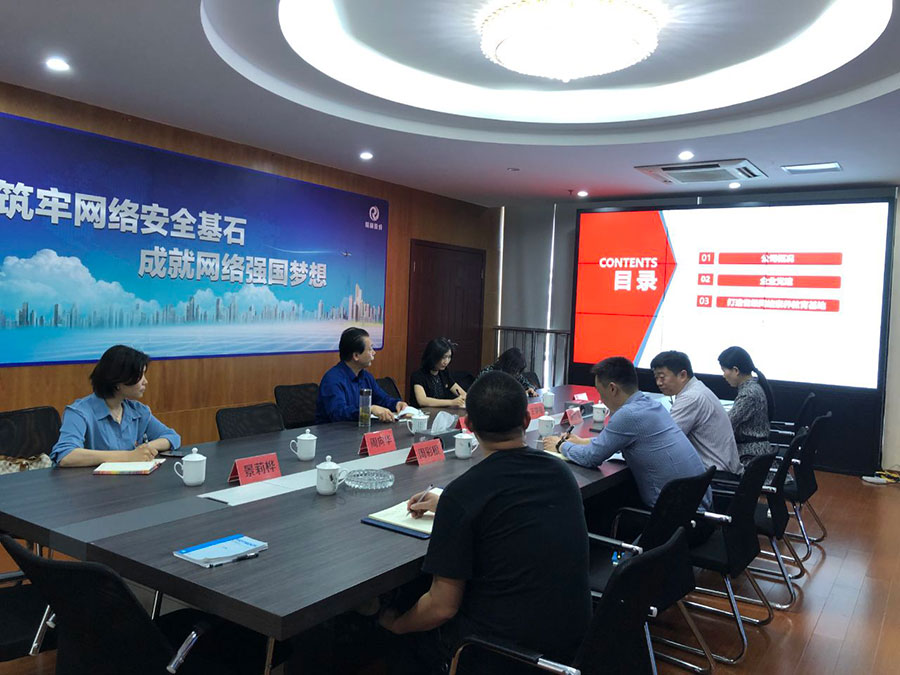 5月13日,江蘇省互聯(lián)網(wǎng)協(xié)會(huì)秘書長劉湘生和常州市委網(wǎng)信辦副主任、常州市互聯(lián)網(wǎng)行業(yè)黨委副書記陸煒,常州市互聯(lián)網(wǎng)行業(yè)協(xié)會(huì)周向華秘書長蒞臨江蘇瑞新指導(dǎo)工作。會(huì)上江蘇瑞新支部書記、總經(jīng)理路世強(qiáng)就公司概況、黨建及打造省級(jí)網(wǎng)絡(luò)安全人才素養(yǎng)基地工作做了詳細(xì)的匯報(bào)。就致力于打造互聯(lián)網(wǎng)行業(yè)黨建品牌的愿景與各位領(lǐng)導(dǎo)做出詳細(xì)匯報(bào)。