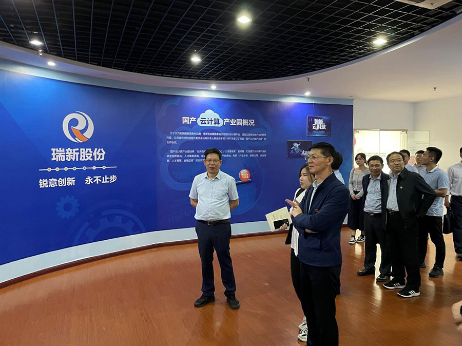 接著領(lǐng)導(dǎo)一行分別參觀了瑞新信息安全實(shí)訓(xùn)室和信創(chuàng)技術(shù)應(yīng)用成果展,領(lǐng)導(dǎo)們認(rèn)真的聽取工作人員就國產(chǎn)化硬件平臺及軟件適配環(huán)境的介紹,仔細(xì)觀看了公司自主研發(fā)的國產(chǎn)化統(tǒng)一信任管理平臺,政務(wù)內(nèi)網(wǎng)綜合應(yīng)用系統(tǒng),電子文件管理等系統(tǒng)的演示。