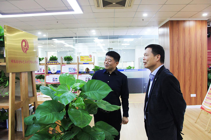 接著領(lǐng)導(dǎo)一行分別參觀了瑞新網(wǎng)絡(luò)安全紅色衛(wèi)士宣傳隊(duì)成果展示,詳細(xì)了解了瑞新網(wǎng)絡(luò)安全紅色衛(wèi)士宣傳隊(duì)活動(dòng)開展情況,觀看了《瑞新網(wǎng)絡(luò)安全紅色衛(wèi)士宣傳隊(duì)宣傳片》和《2021年網(wǎng)絡(luò)安全宣傳周成果展示短片》。