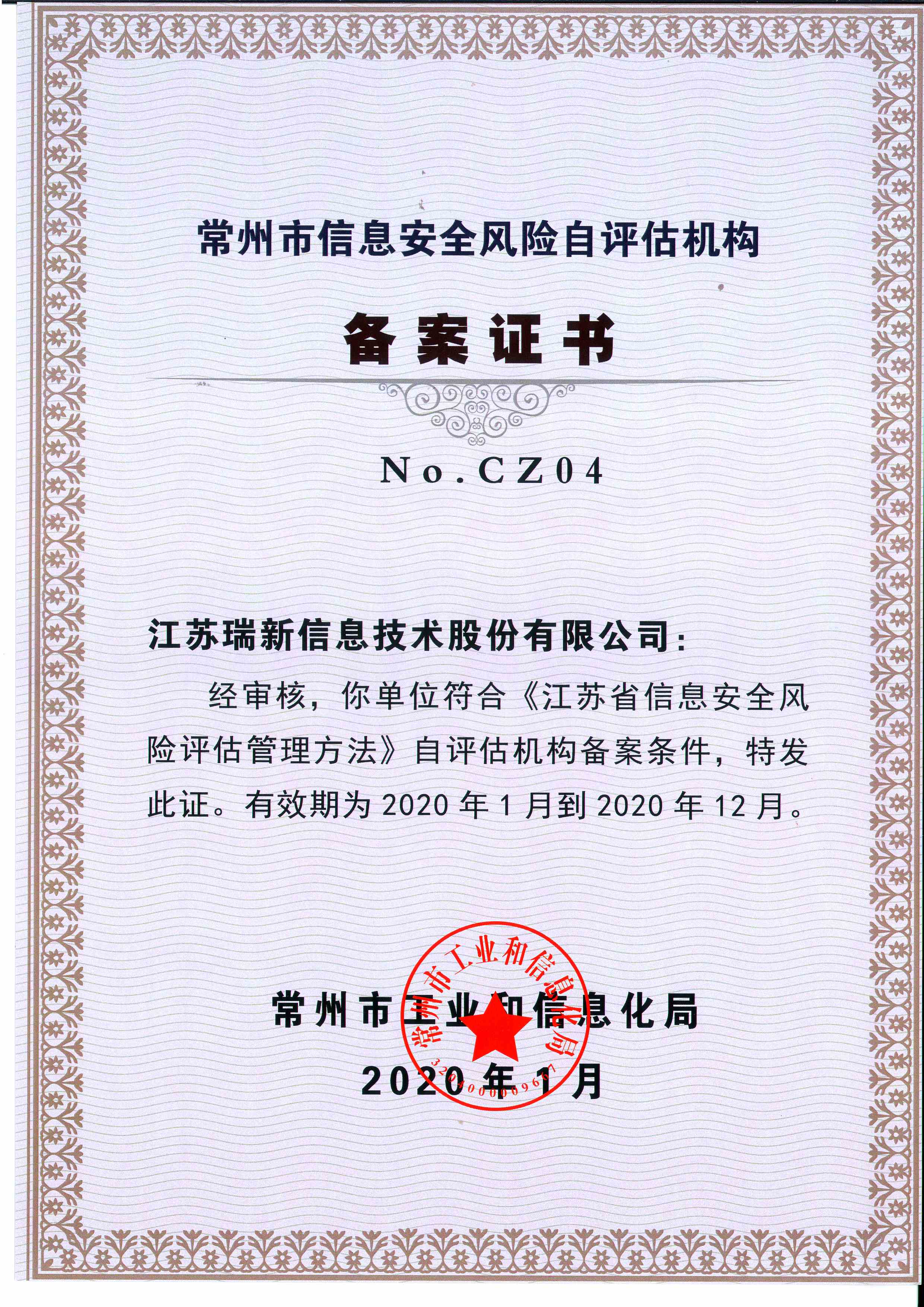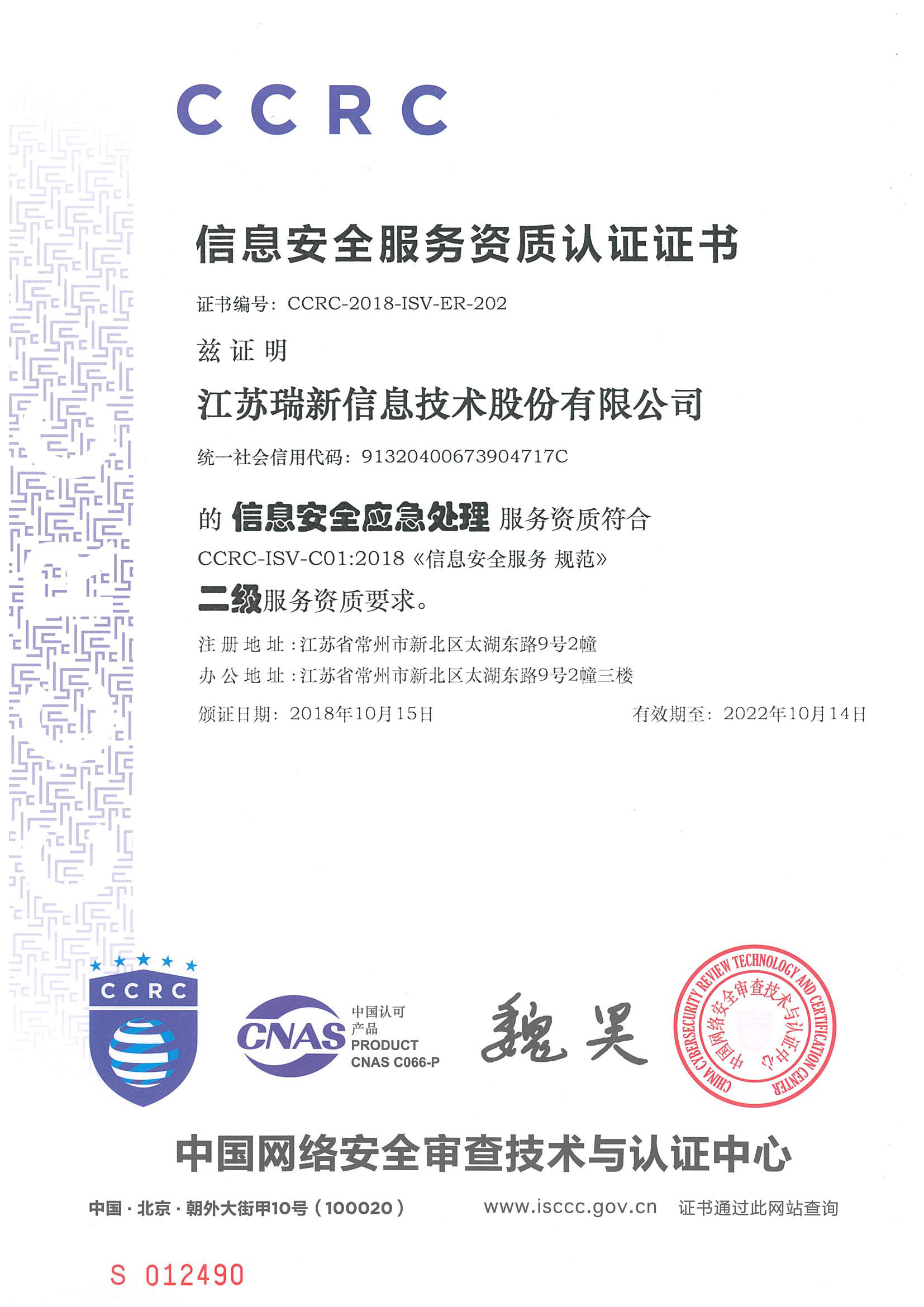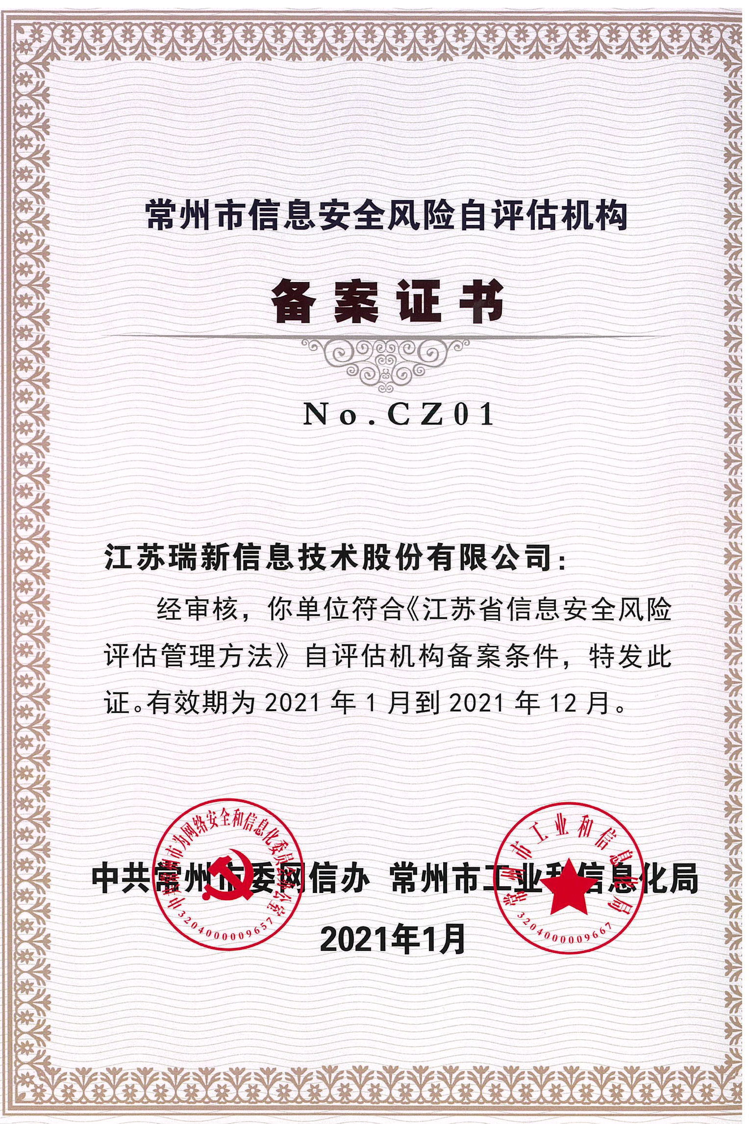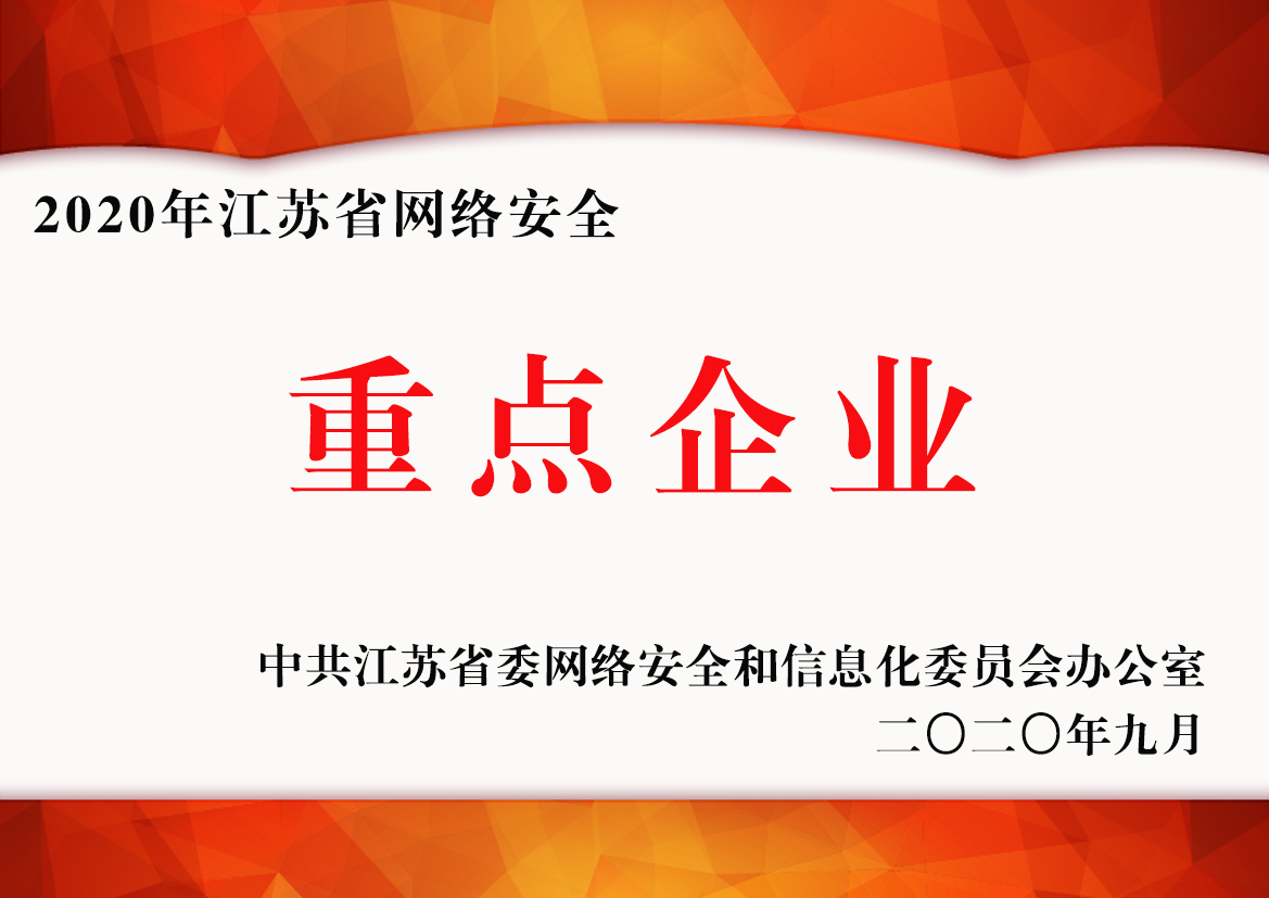 公司獲得了中國網(wǎng)絡(luò)安全審查技術(shù)與認(rèn)證中心頒發(fā)的《信息安全應(yīng)急處理》及《信息安全風(fēng)險(xiǎn)評估》二級(jí)證書;國家信息安全測評中心頒發(fā)的《信息安全服務(wù)資質(zhì)》二級(jí)證書;江蘇省軟件行業(yè)協(xié)會(huì)頒發(fā)的《軟件企業(yè)》證書;通過了CMMI3軟件成熟度開發(fā)認(rèn)證;通過了ISO9001質(zhì)量管理體系認(rèn)證證書及27001信息安全管理體系認(rèn)證證書;是江蘇省的高新技術(shù)企業(yè)、兩化融合示范試點(diǎn)企業(yè)、信息安全應(yīng)急響應(yīng)支撐單位;是常州市十佳軟件企業(yè)。