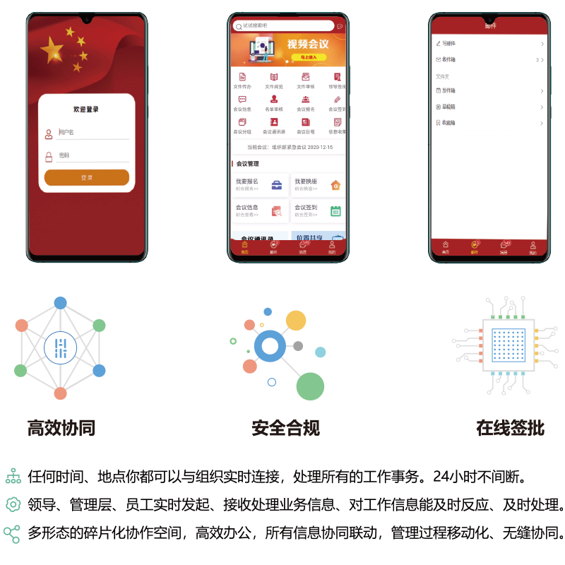 基于安全應用下的移動化辦公,支持原生APP框架,微信應用服務化,前后端分離,與電腦端無縫切換,支持內外網網閘數(shù)據(jù)交換無縫銜接,支持信創(chuàng)應用移動化。